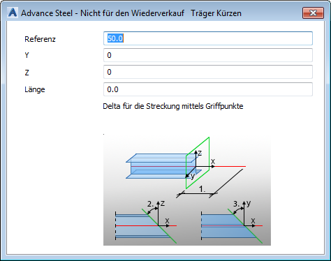 | Referenz | Definiert die Kürzung (oder Verlängerung). Ein positiver Wert stutzt den Träger, und ein negativer Wert verlängert ihn. |