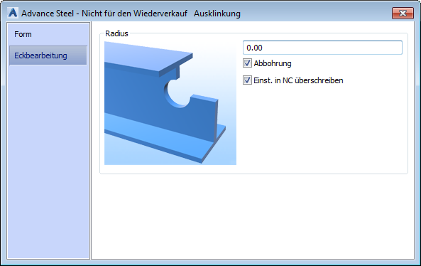 Definiert den Radius an der Ausklinkungsecke.