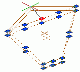 Sie können in einem polygonalen Blech eine neue Ecke am Mittelpunkt der ausgewählten Kante einfügen. Die eingefügte Ecke können Sie auf die gleiche Weise wie alle anderen Ecken mithilfe des Griffpunkts ändern.