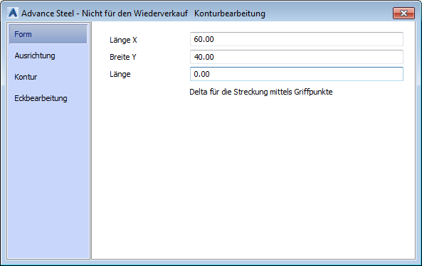 | Länge | Definiert das Längeninkrement (den Rastersprung) beim Ändern der Konturlänge mithilfe der Griffe. |