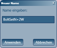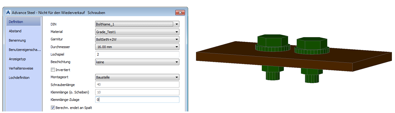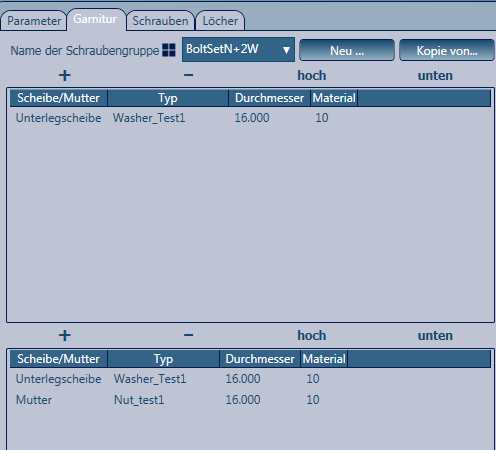 Nach dem Definieren der neuen Muttern- und Unterlegscheibentypen: