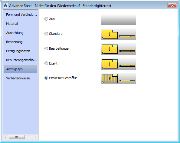 Auf dieser Registerkarte des Dialogfelds Gitterrosteigenschaften können Sie die Darstellung des Gitterrosts im Modell ändern.