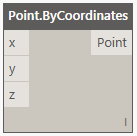 Der Block Point.ByCoordinates wird im Arbeitsbereich angezeigt. Dieser Block benötigt drei Koordinaten, um einen Punkt zu erstellen. Die Eingabe besteht daher aus drei Zahlen und die Ausgabe ist ein Punkt (mit drei Koordinaten):
