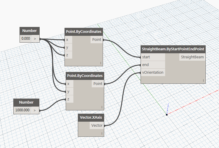 - Der StraightBeam.ByStartPointEndPoint-Block wird im Arbeitsbereich von Dynamo angezeigt: