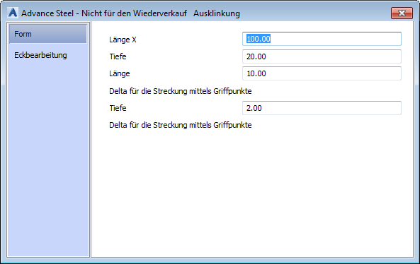 Verwenden Sie die Parameter auf dieser Registerkarte, um die Ausklinkungsgröße zu ändern.