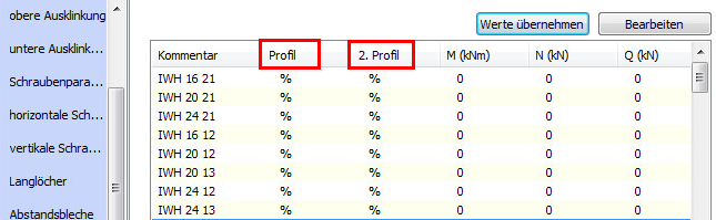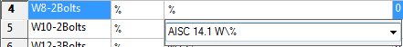 AISC 14.1W\% : Dies drückt aus, dass diese Zeile unabhängig von der Profilgröße für alle AISC 14.1 W-Profile gilt.