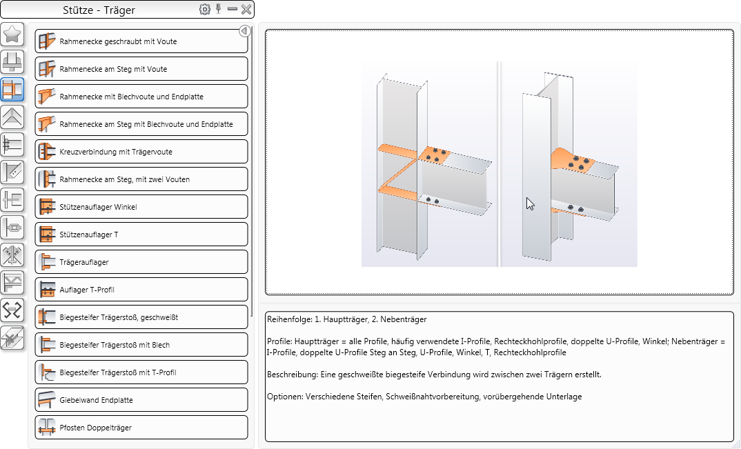 . Wählen Sie in den Kategorien im Verbindungs-Manager den benötigten Eintrag. Für die einzelnen Elementtypen werden geeignete Verbindungen angezeigt.