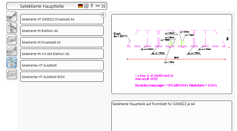 Stücklistenvorlagen-Palette |