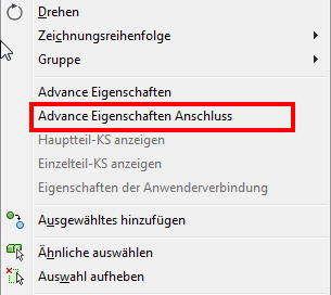 - Wählen Sie ein Verbindungselement aus, klicken Sie mit der rechten Maustaste und wählen Sie Advance Anschlusseigenschaften aus dem Kontextmenü.