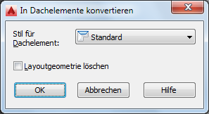 . Die Dachelementstile aus der aktuellen Zeichnung werden im Arbeitsblatt In Dachelemente konvertieren angezeigt.
