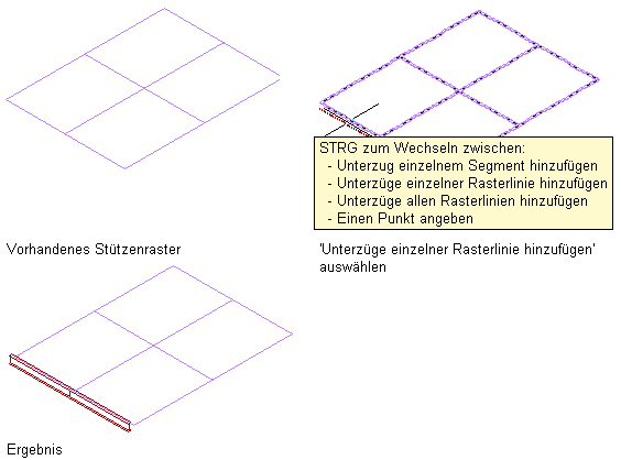 Hinzufügen von Unterzügen zu einer einzelnen Rasterlinie