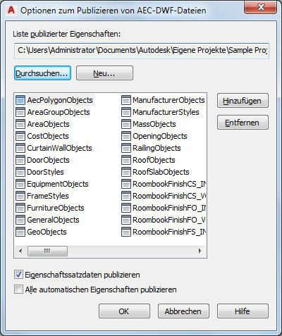 Mit diesen Schritten können Sie eine einzelne DWF- oder DWFx-Datei des derzeit bearbeiteten Modells erstellen, die die benutzerdefinierten Eigenschaftssatzdaten enthält.