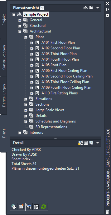 Projektplansatz im Projekt-Navigator von AutoCAD Architecture Toolset