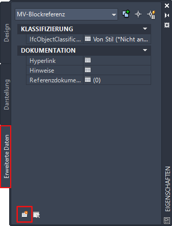 9. Klicken Sie in der Eigenschaftenpalette auf der Registerkarte Erweiterte Daten auf Eigenschaftssätze hinzufügen.