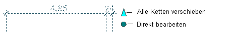 2. Verwenden Sie die Griffe, um Maßtexte und Maßketten neu zu positionieren sowie Hilfslinien zu verlängern oder zu verkürzen.