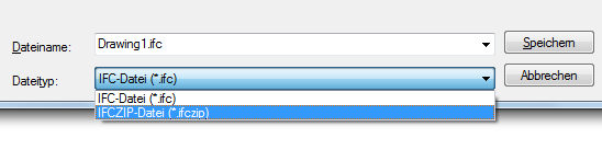 3. Wählen Sie im Dialogfeld IFC-Datei exportieren in der Dropdown-Liste Dateityp IFCZIP-Datei (*.ifczip) aus.