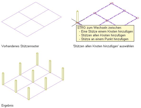 Hinzufügen von Stützen zu allen Knoten eines Stützenrasters