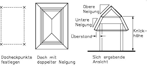 3. Geben Sie im Zeichnungsbereich die Eckpunkte des Dachs an.