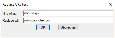 Sie können eine vollständige URL oder den Teil einer URL angeben. Beispielsweise können Sie alle .com-Hyperlink-Verweise durch .net ersetzen, oder Sie können in einem einzigen Vorgang eine interne URL durch eine URL für eine externe Website ersetzen.