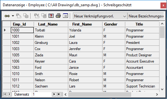 Nach erfolgter Konfiguration der Datenquelle können Sie in der Datenanzeige des Programms Datenbankdatensätze anzeigen.