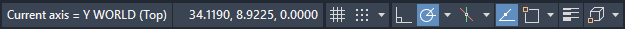 Das BKS-Symbol mit den RTUCS-Achsenlinien und die Statuszeile zeigen die aktuellen Achseninformationen an: