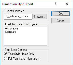 | Text Style Options | Speichert entweder die vollständigen Textstilinformationen oder nur den Textstilnamen der Bemaßung in der ASCII-Datei. |