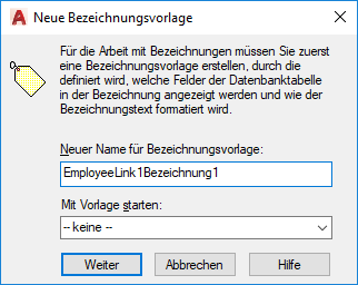 In bestimmten Fällen müssen Bezeichnungsvorlagen bearbeitet werden. Beispiel: Sie möchten zusätzliche Felder aus der Datenbanktabelle in der Zeichnung anzeigen oder die Schrift oder die Größe des Bezeichnungsobjekts ändern. Darüber hinaus können Sie mehrere Einstellungen für den Abstand festlegen, die sich auf den Einfügepunkt der Bezeichnungen und - bei zugeordneten Bezeichnungen - auf die zugehörigen Führungsobjekte auswirken.