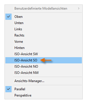 Klicken Sie auf das Steuerelement [Oben], und wählen Sie im Menü den Befehl ISO-Ansicht SO.