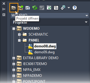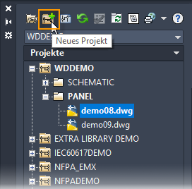 AutoCAD Electrical toolset ist projektbasiert. Ein Projekt besteht aus einem Satz zusammenhängender Zeichnungen. Alle projektbezogenen Informationen, einschließlich der im Projekt enthaltenen Zeichnungen, werden in einer Projektdatei mit der Erweiterung WDP gespeichert.