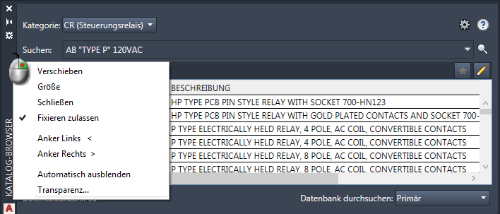 AutoCAD Electrical toolset verwendet für die Verwaltung von Projekten und für die Arbeit mit der Katalogdatenbank Paletten. Eine Palette kann auf dem Bildschirm verbleiben, während andere Befehle verwendet werden. Sie steht Ihnen also bei Bedarf jederzeit zur Verfügung.