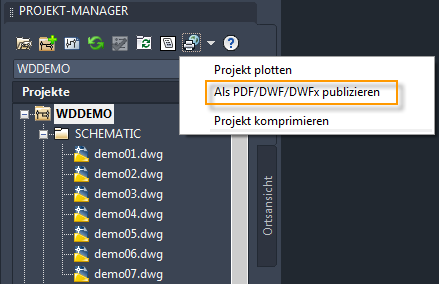Zum Drucken Ihres Projekts verwenden Sie die Schaltfläche Publizieren/Plotten im Projekt-Manager.