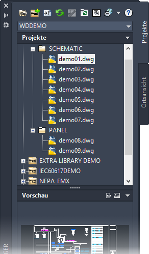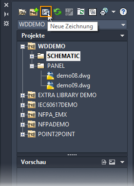 Zum Erstellen und Hinzufügen von Zeichnungen zu einem Projekt verwenden Sie den Projekt-Manager. Finden