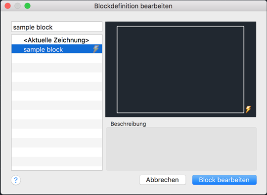Zeigt die Beschreibung der ausgewählten Blockdefinition an.