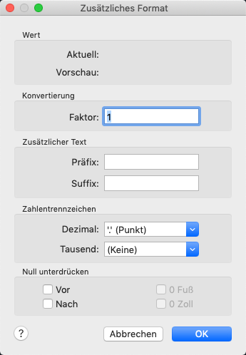 Legt den Konvertierungsfaktor fest, der für den aktuellen Wert verwendet werden soll. Der Vorgabewert ist 1 für keine Konvertierung.