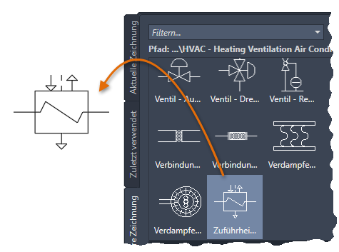 Fügen Sie Symbole und Details aus kommerziellen Online-Quellen oder Ihren eigenen Konstruktionen in Ihre Zeichnungen ein.