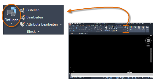 Es gibt drei relevante Elemente für das Einfügen von Blöcken in einer Zeichnung.