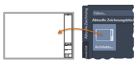- Die Registerkarte Aktuelle Zeichnung zeigt alle Blockdefinitionen ausschließlich in der aktuellen Zeichnung an.