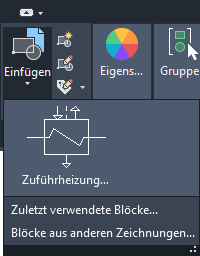 - Klicken Sie auf der Registerkarte Start auf Einfügen und dann auf Blöcke aus anderen Zeichnungen. Dadurch wird der Befehl BLOCKPALETTE gestartet.