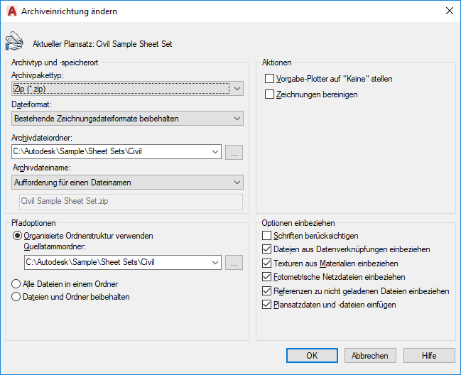 Archiv (Befehl) Finden: ändern der Archiveinrichtung