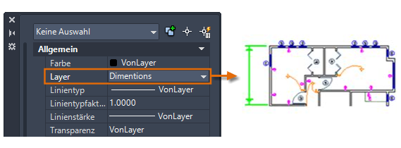 Sie können einige Eigenschaften eines Objekts entweder über den Layer (VonLayer) festlegen oder indem Sie die Eigenschaft explizit und unabhängig vom Layer angeben.