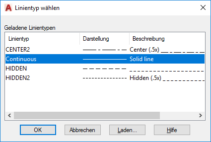 Geladene Linientypen