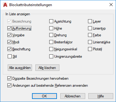Steuert die Anzeige der Attributliste im Blockattribut-Manager.