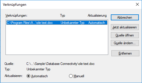 Zur Anzeige und Bearbeitung verknüpfter Dateien und Objekte.