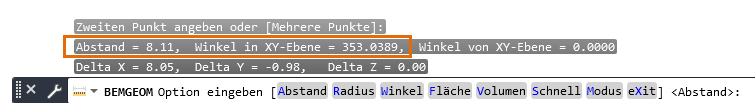 Die Messungen werden im Befehlsfenster angezeigt. Falls erforderlich, drücken Sie F2, um das Befehlsfenster zu erweitern.
