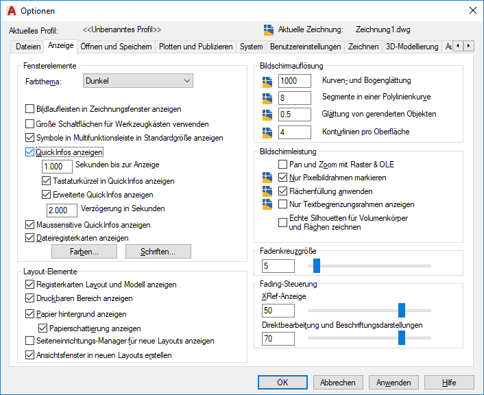Steuert die für die Zeichnungsumgebung spezifischen Anzeigeeinstellungen.