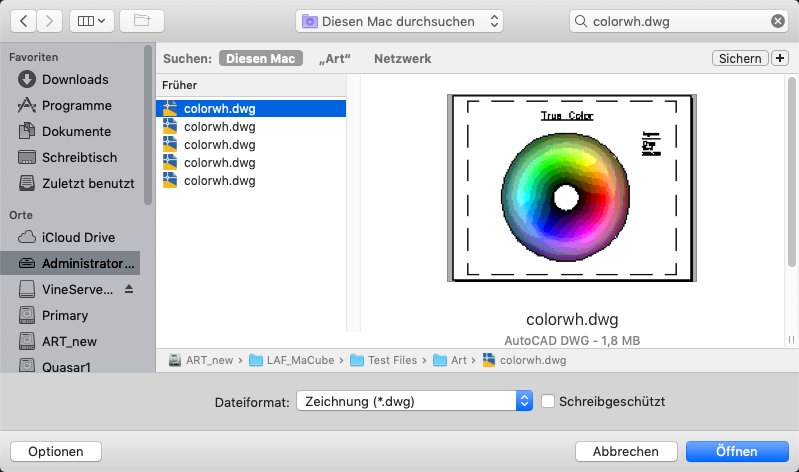 Mehrere Befehle öffnen Standarddialogfelder zur Dateiauswahl, in denen Sie durch die Dateien und Ordner auf einem lokalen Netzlaufwerk navigieren können. Im Folgenden finden Sie eine Liste häufig verwendeter Optionen, die in diesen Dialogfeldern verfügbar sind. Möglicherweise weicht das Aussehen der Dialogfelder leicht von dieser Darstellung ab.