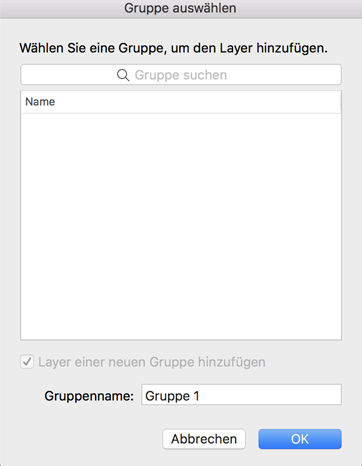 Listet die Layer-Gruppen auf, zu denen Sie ausgewählte Layer hinzufügen können.