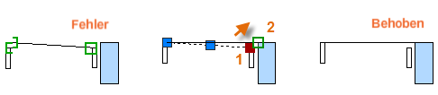 Griffe werden angezeigt, wenn Sie ein Objekt auswählen, ohne dass Sie einen Befehl starten. Griffe werden häufig zur Lichtbearbeitung verwendet. Beispielsweise befindet sich die nachfolgende Linie versehentlich am falschen Endpunkt. Sie können die falsch angeordnete Linie auswählen, auf einen Griff und dann auf die korrekte Position klicken.