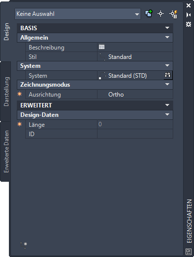 Anmerkung: In der Eigenschaftenpalette bedeutet , dass eine Eigenschaft nur dann verfügbar ist, wenn Sie Schemalinien hinzufügen, nicht wenn Sie sie bearbeiten.