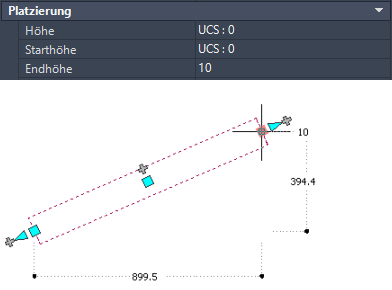 Gibt die Höhe der Start- und Endpunkte des Luftkanal/-rohr-Segments an.
